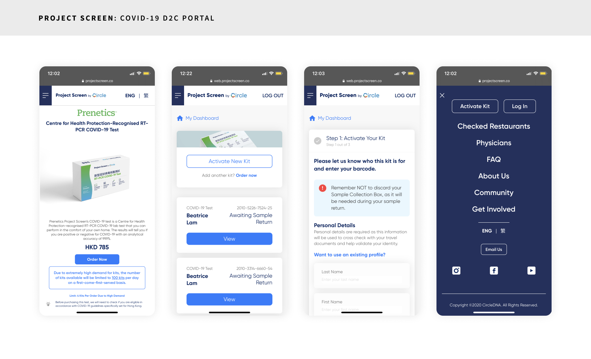 Project Screen is a COVID-19 initiative under Prenetics that is operating in both the United Kingdom and Hong Kong. It has become the trusted testing partner for the Hong Kong government, major corporations, event organisers, and individuals.