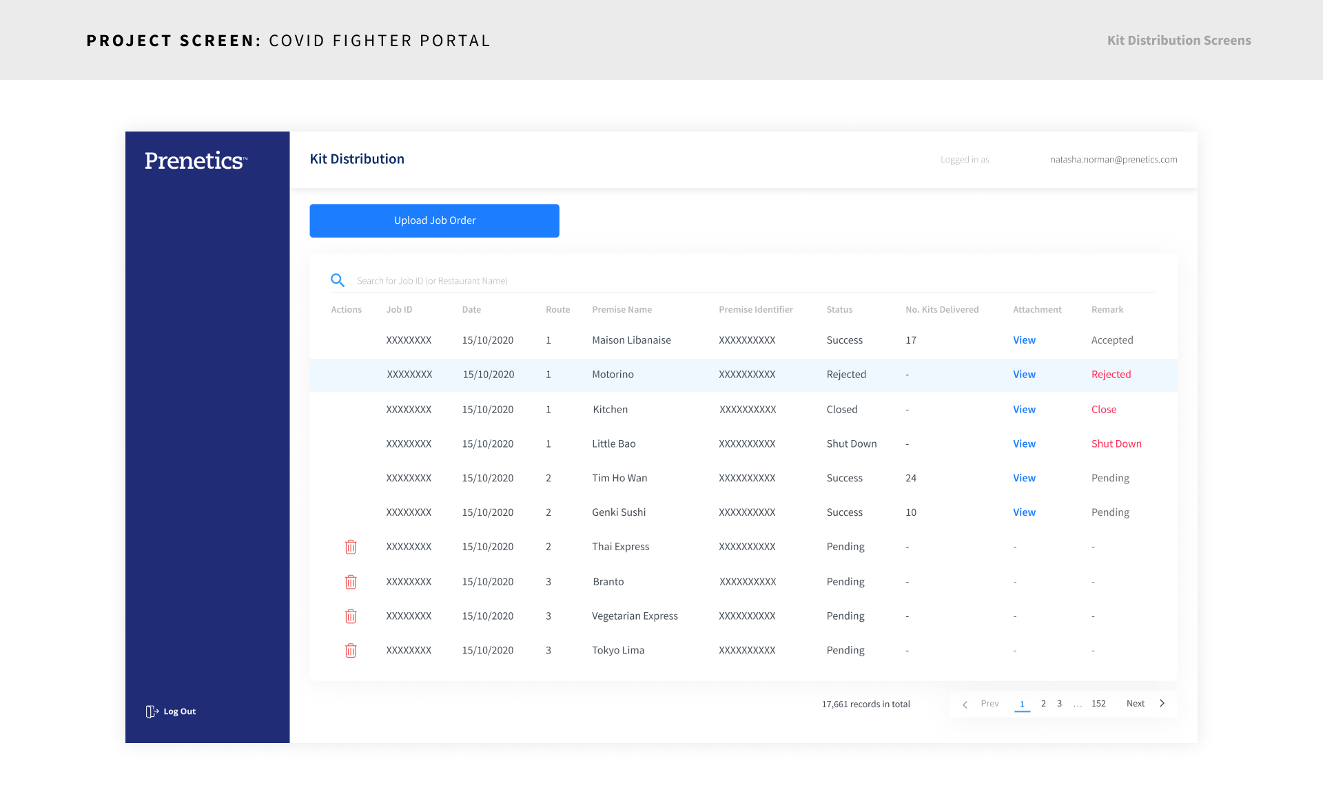 Track kit barcodes that were assigned to restaurants
